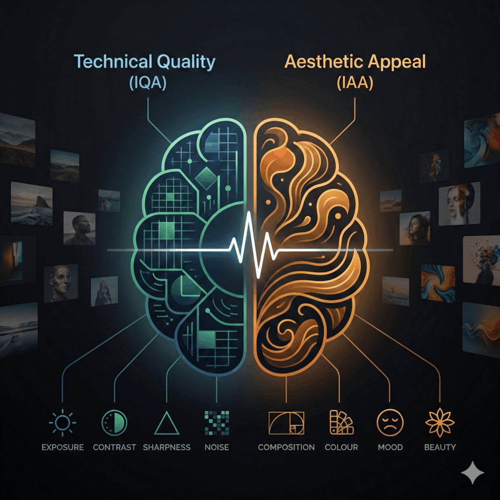 Can a computer judge beauty the way the human brain does? This project explores the relationship between EEG signals and both image quality and aesthetic appeal, linking neural responses to computational metrics of technical quality and beauty. Using correlations, predictive models, and neural signature analysis, we investigate how the brain encodes these two perceptual aspects.